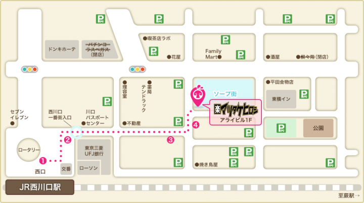 当店は京浜東北線「西川口駅」西口から1分の場所にあります。ご来店の際は下の詳細地図をご覧下さい。